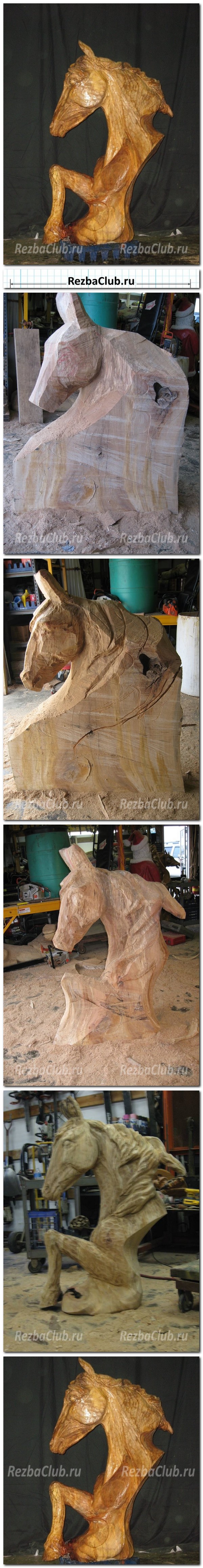Как вырезать при помощи бензопилы из бревна скульптуру лошади