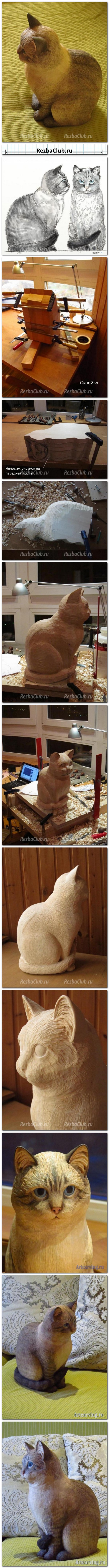 Как вырезать из дерева фигурку тайского кота.