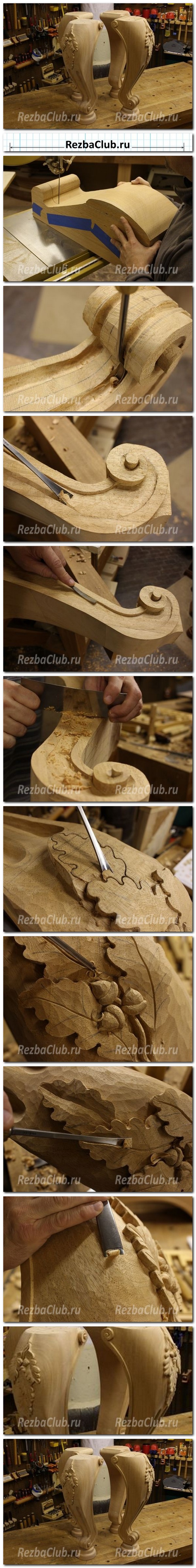 Как вырезать из дерева ножки и украсить их резными дубовыми листьями.