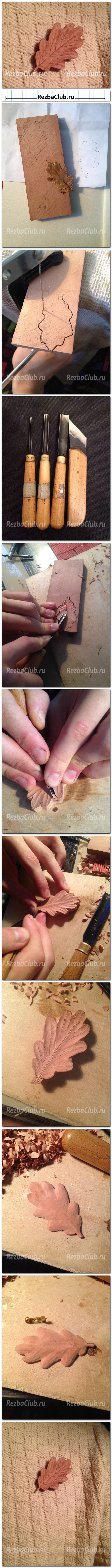 Как вырезать из дерева брошь в форме дубового листа.