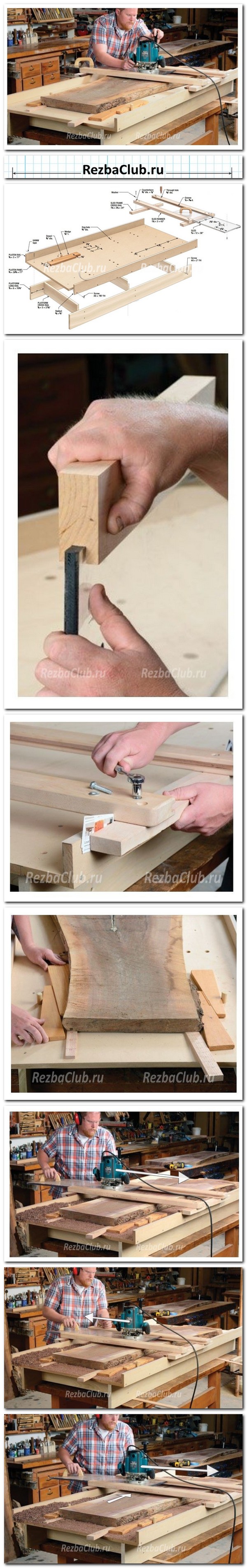 Авторы показали нам каким образом можно собрать нехитрый роутер с помощью которого легко выравниваются большие площади, например, широкая доска или торцевой спил дерева ну и т. д.